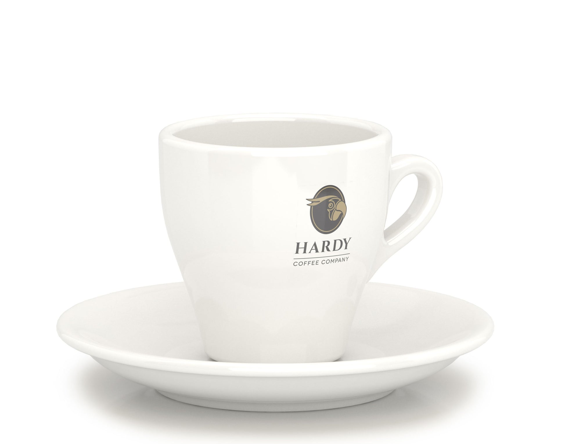 In Milan, Hardy coffee is served from this beautiful matching cup.