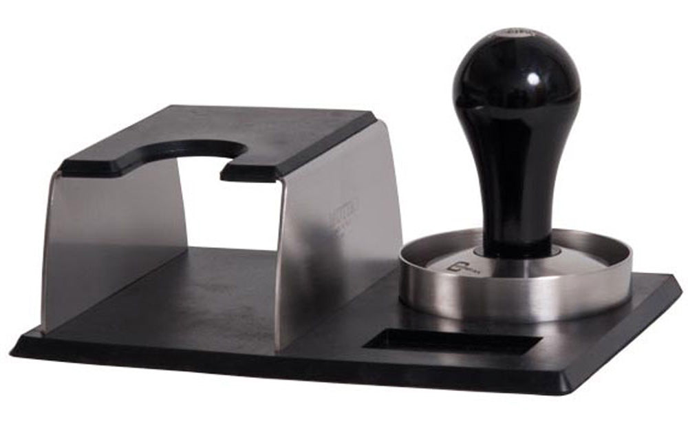 The rubber support is equipped with grooves for the tamper and accessories. The carrier is made of rust-free matted stainless steel, which is also covered with a protective rubber layer. The name MOTTA is engraved on the side.